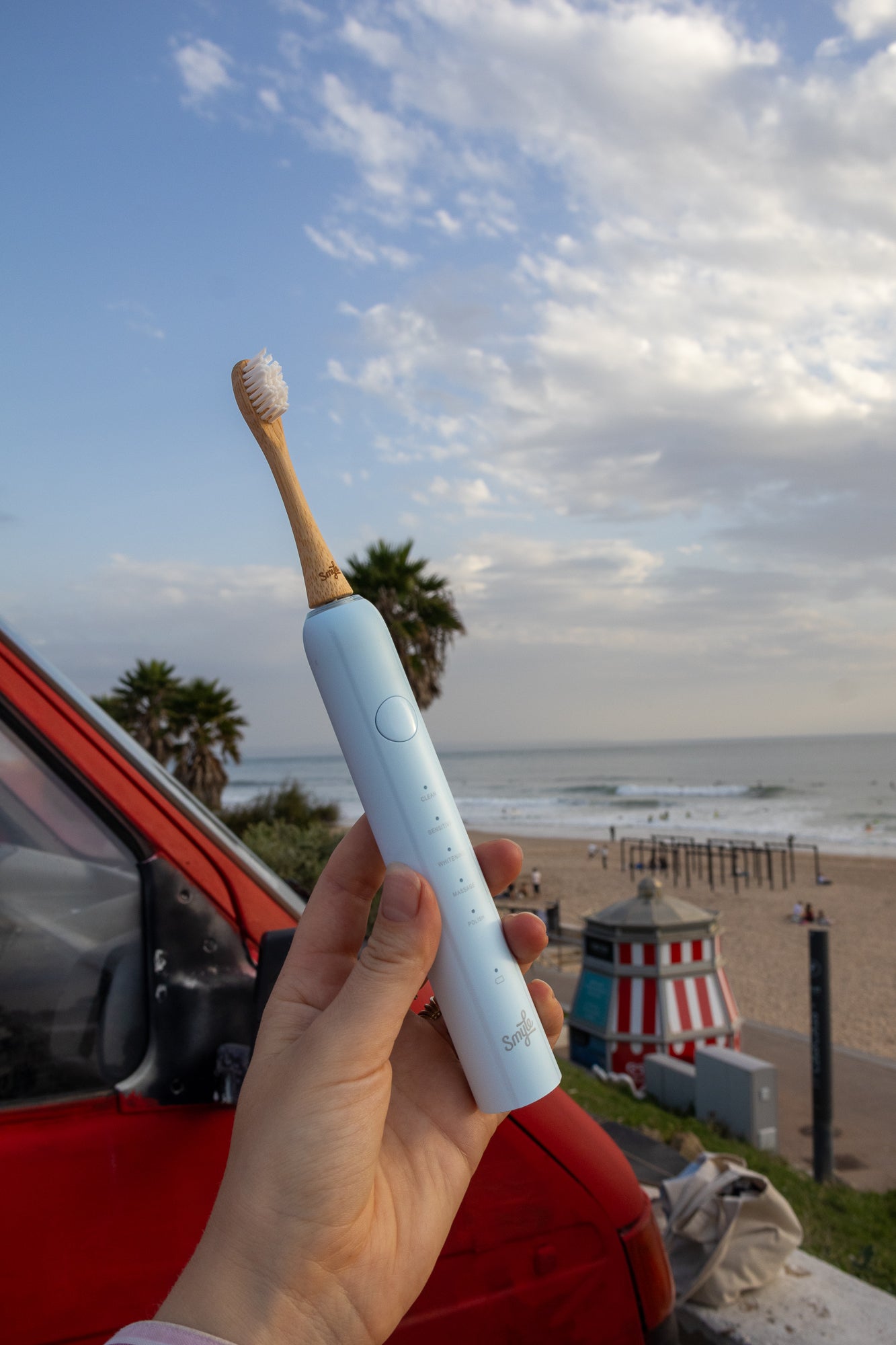 Zum Beispiel macht die elektrische Schallzahnbürste von Smyle schnelle und effektive Bewegungen, die Plaque und anderen Schmutz effektiver entfernen.