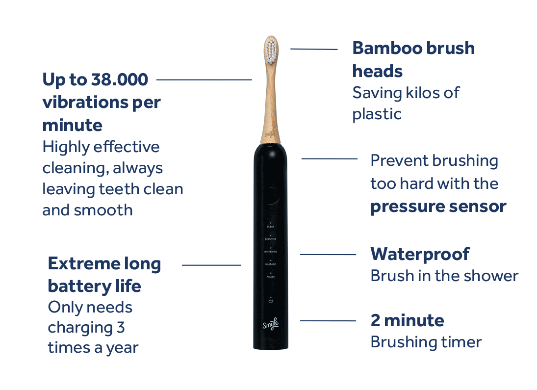 Zum Beispiel macht die elektrische Schallzahnbürste von Smyle schnelle und effektive Bewegungen, die Plaque und anderen Schmutz effektiver entfernen.