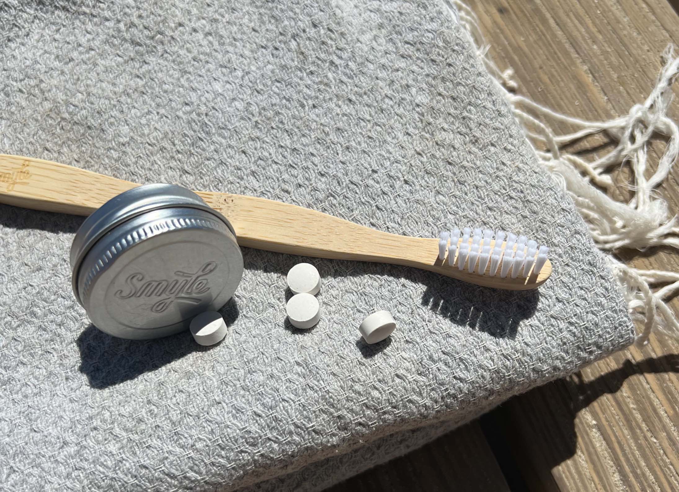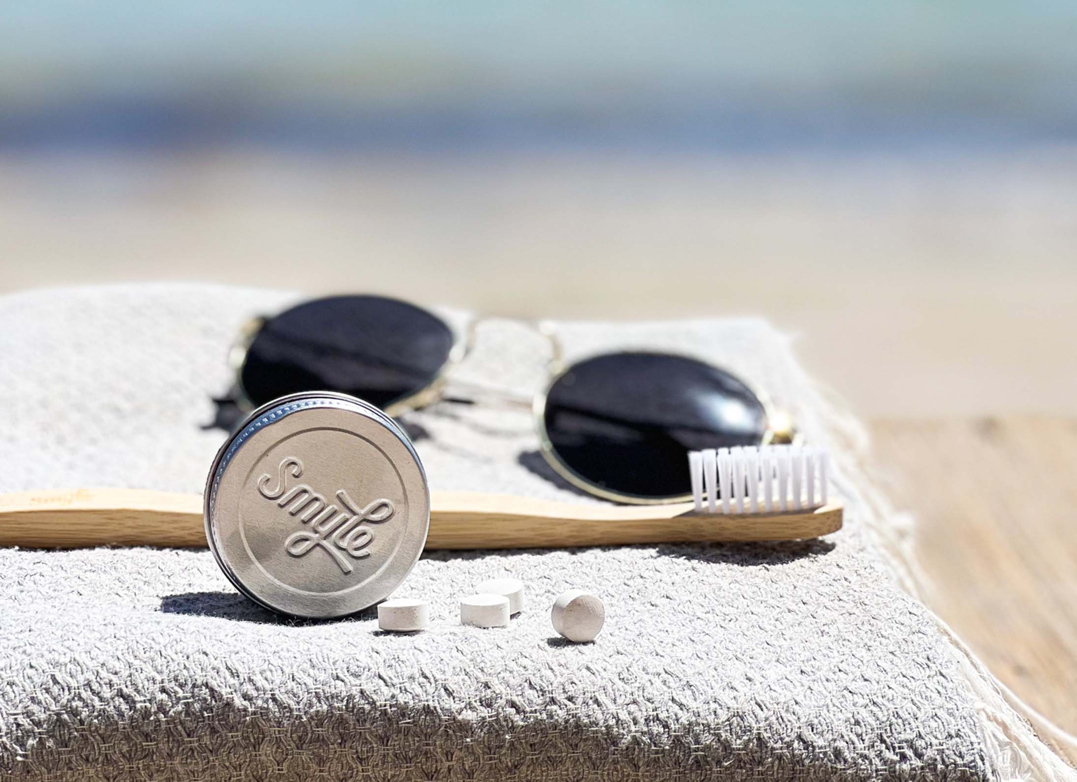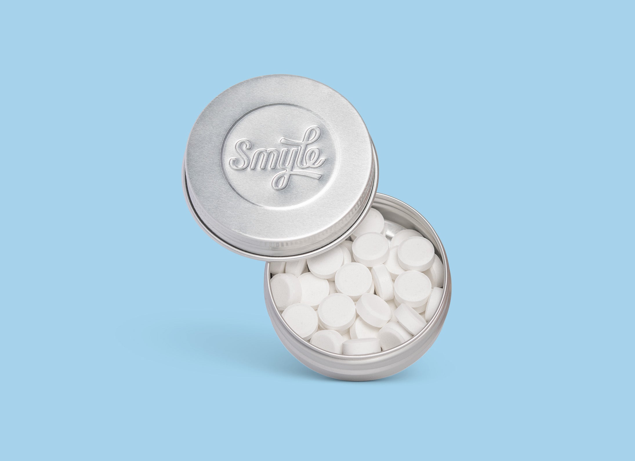 Die Smyle Reisedose, super praktisch für unterwegs, bietet Platz für 28 Tabs, ausreichend für 2 Wochen nachhaltiges Zähneputzen.